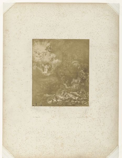 Curator: Delauney's "Fruit Piece" feels so heavy, almost suffocating in its abundance. What do you think? Editor: Well, artist Alfred Alexandre Delauney, who passed in 1894, really packs it in, doesn't he? I see it as a meditation on excess and privilege, a display of wealth rendered in monochrome. Curator: Privilege is a good word. There’s almost a melancholy in the shadows, a sense of fleeting beauty, like a memento mori nestled among the grapes. Editor: Absolutely. It's like a Dutch still life viewed through the lens of 19th-century anxieties, when class struggles became starker. Curator: And yet, there’s a joy in the composition, a celebration of nature's bounty. It's contradictory, a feast for the eyes that also makes you pause and reflect. Editor: Yes, this piece invites us to question the systems that enable such displays, which, honestly, is still relevant now. Curator: I suppose I can see the value of that approach. Editor: Exactly. Let's aim for that kind of thoughtfulness with all the art we encounter.