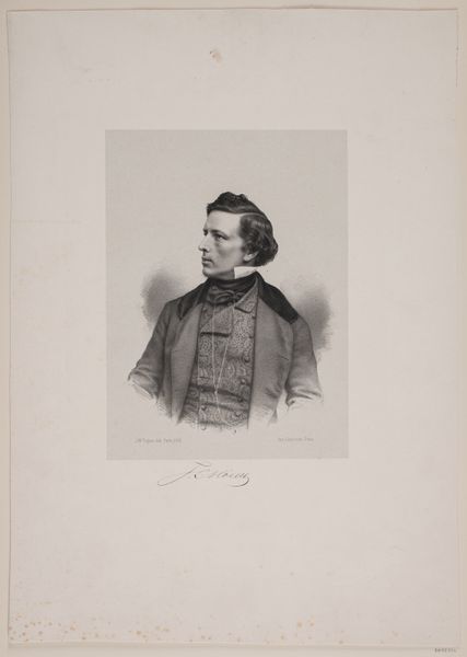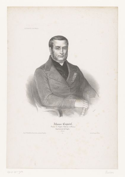 This portrait of Émile de Girardin, editor-in-chief of La Presse, was made by Marie-Alexandre Alophe as a lithograph. Although undated, the print’s cultural references allow us to situate it in France sometime in the mid-19th century. Consider the cultural and institutional history of this time: The July Revolution of 1830 had ousted the Bourbon monarchy and ushered in a period of liberal reform, creating space for figures like de Girardin to shape public opinion through journalism. The presence of books in the background isn't accidental; it is there to enhance the intellectual gravitas of the sitter. De Girardin's confident pose speaks to the rising status of media figures during this period. To further understand the print's significance, we could consult archives of La Presse and other periodicals. Examining the institutional context, such as the relationship between the press and the state, would reveal more about the portrait's function as a cultural artifact.
