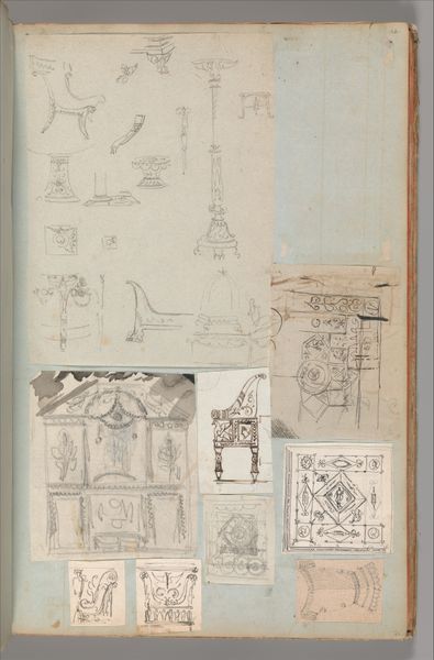 This scrapbook page was composed by Charles Percier around the turn of the 19th century and presents a collection of architectural and design motifs in ink. Percier was a leading architect and designer during the Napoleonic era in France, a time when the aristocracy was reasserting its power, and design was perceived as crucial to the performance of power. Looking closely, we can see how Percier incorporates classical elements, such as symmetry and Greek and Roman motifs, that served as visual symbols of authority and order. The designs offer a glimpse into the aesthetic values of the elite at the time. Consider the intimacy of a scrapbook, a space for personal collection and reflection. This page captures a moment in time when the language of design and the political narratives of power converged, influencing the aesthetic landscape of an era. It evokes a sense of how the personal and the political are always intertwined, shaping our understanding of identity and history.