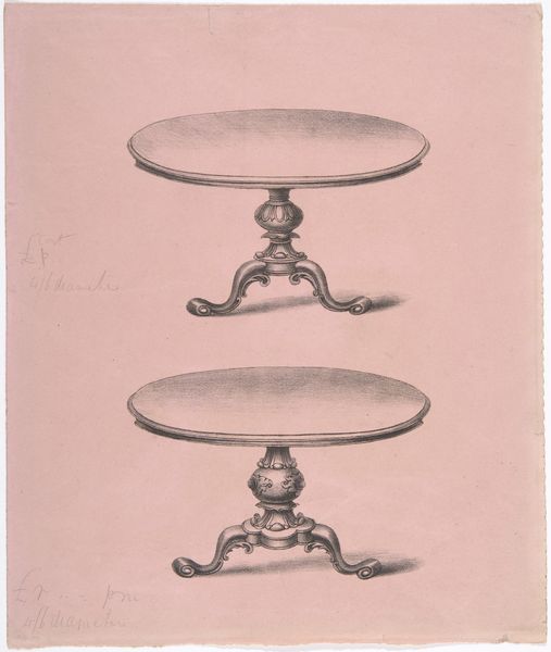 This watercolor work presents three designs for swivel chairs, their creator unknown. Rendered on paper, the designs offer a glimpse into a world of domesticity and perhaps, the artist's own aspirations. Consider for a moment the seemingly mundane subject of chair design. It reflects not only aesthetic preferences but also social and cultural values related to gender and class. Who were these chairs intended for? Were they meant for women at their dressing tables, or for men in studies? The swivel feature suggests a degree of freedom and movement, yet the ornate decoration speaks to a desire for elegance. There is an undeniable tension between utility and adornment that underlies our perception of value, labor and luxury. These designs serve as material projections of cultural identities. What stories might these chairs tell if they could speak?