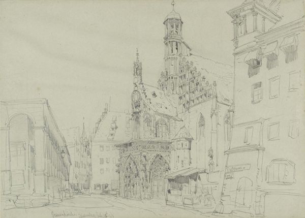 Georges Michel sketched Saint Nicolas des Champs, likely in the early 1800s, using graphite on paper. This drawing offers us a glimpse into Parisian life following the French Revolution and during the Napoleonic era. Michel's choice of subject, a prominent church, speaks volumes about the shifting social and political landscape of France at the time. In the wake of the Revolution, institutions like the church were under intense scrutiny. Michel's sketch neither glorifies nor condemns the church, but rather presents it as an enduring presence in the urban environment. To understand this drawing fully, one can delve into archival records detailing the church's role in the community, as well as broader studies of French society, and the place of religious institutions. Art like this provides a window into the complex interplay between social structures, institutional power, and individual expression.
