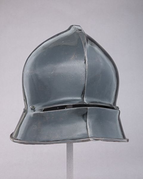 This is a "Barbute," crafted from iron around 1469-1498 by Pietro da Castello. Note the helmet's visorless face opening. It echoes classical Greek helmets, particularly those from Corinth. Observe, this is not mere imitation but a revival; the barbute becomes a symbol of cultural memory, invoking the glory of antiquity. Consider the emotional weight of donning such a helmet: the psychological transformation from man to warrior. It has reappeared throughout history, evolving from functional battle gear to ceremonial objects, and even inspiring modern design. The helmet embodies a complex interplay between past and present, protection and identity. In its cool, hard steel, we see not just an object of war but a potent symbol, resonating with collective memory and the enduring human fascination with conflict, protection, and transformation.