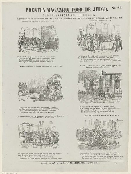 Curator: Looking at this print titled "Straatverkopers", created between 1850 and 1881 by Dirk Noothoven van Goor, I'm struck by the sense of organized chaos. Four vignettes offer glimpses into street life. Editor: Right? It feels so… lived-in. You can almost smell the earthy aromas rising from these tiny scenes. I keep wondering about the sounds—all the vendors shouting their wares, kids laughing… Curator: The use of engraving as a medium enhances the detail, doesn’t it? Note the fine lines that define form and texture, and the tonal range achieved within a limited palette. The compositional structure places these anecdotal narratives on one sheet. Editor: Absolutely. And there's a curious contrast at play. Each small tableau pulses with an energy specific to its activity, while the whole piece offers a unifying sensibility about community and labor. There’s something about those cramped figures—their stoicism in what I imagine were dire times. Curator: The piece is definitely narrative-driven, aligning with a folk-art aesthetic and genre-painting conventions. What do you believe the artist sought to capture about daily life at the time? Editor: I reckon he wanted to give those stories and faces some agency, immortalized in ink. Ordinary lives doing ordinary things, becoming extraordinary art! Do you believe this collection captures a specific community sentiment or social commentary? Curator: From a formalist lens, these works act almost like documentary photography, but from an interpretive standpoint, I sense that his style captures Dutch resilience and charm in a lighthearted tone. Editor: See, that’s what makes it so wonderful, this dance between technique, material, social record and subjective spark. We’ve been peering into this printed page; what a ride!