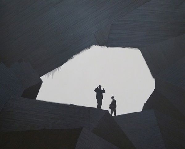 Editor: James Casebere's photograph "Arches," possibly created between 1985 and 2005, really strikes me. The monochromatic palette and simplified forms create this otherworldly, almost dreamlike space. It feels both ancient and futuristic. What do you see in this piece? Curator: Well, I immediately notice the archetypal symbolism at play. The arch itself, duplicated here, is a potent symbol across cultures representing transitions, portals, and thresholds, literally and metaphorically. Its presence here suggests a movement, a journey... where do you think it might lead? Editor: Perhaps to enlightenment? The light at the end of the tunnel kind of reinforces that idea. It almost feels like a religious space, or a sacred cave. Curator: Precisely! The cave is another primordial image linked to the subconscious, the womb, initiation rites. And Casebere’s use of stark monochrome strips away distracting details, forcing us to confront these fundamental symbols. It reduces the forms to their bare essence, right? Think about Plato's cave, too, the play of shadows and illusions. Editor: So, are you suggesting that this photograph is not just about a physical space, but also an exploration of deeper psychological or spiritual themes? Curator: Absolutely. The image speaks to our shared cultural memory. These forms resonate because they're embedded in our collective unconscious. What do you make of the constructed, artificial look of it all, though? Almost like a stage set. Editor: That adds another layer of complexity! The artificiality disrupts the idea of a natural, organic space, suggesting a deliberate construction of meaning. Almost like a film set or something like that? It seems intentional... and contrived at the same time. Curator: Right, Casebere creates these constructed environments and photographs them. It invites questions about reality versus artifice. The cultural memory lives, even in artificial things, or better: *through* artificial things. That's part of what makes the picture so uncanny and affecting! Editor: I never thought about how deeply ingrained these symbols are. It is amazing to see how simple forms can evoke such complex emotions and ideas!