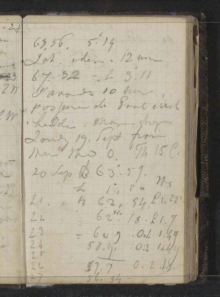 This page from Louis Apol's travel diary, likely created in the late 19th century, contains meteorological observations in the artist's own hand. The handwritten notes, recording wind direction and temperature, remind us of ancient maps and medieval manuscripts, where text and image were intertwined in the pursuit of knowledge. Consider how such meticulous record-keeping reflects a desire to impose order on the natural world, mirroring the alchemist's quest to understand the elements. Note-taking, since the beginning of time, has functioned as an endeavor to capture and preserve knowledge. Think about the Egyptian scribes meticulously recording information on papyrus scrolls. This act of writing is not merely descriptive; it’s an attempt to control the unknown through language and careful observation. It’s a psychological assertion, an effort to make sense of a world that often feels chaotic. Apol’s diary, with its blend of precision and personal expression, embodies a timeless human impulse. It is the impulse to document and understand.