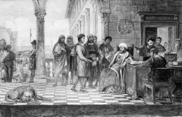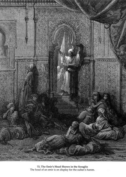 Gustave Doré created this illustration titled 'Christian Cavaliers Captive at Cairo' in the 19th century. It reflects the orientalist fascination prevalent in Europe at the time. Doré depicts a scene where Christian knights are held captive in Cairo, being questioned about their beliefs by a Saracen. The image is steeped in the historical context of the Crusades, a period of intense religious and cultural conflict. The artist uses stark contrasts of light and shadow, emphasizing the tension between the captives and their interrogators. The work perpetuates a narrative of the 'exotic' East, framing the Saracen figure as an authority over the captive Christians. However, the somber expressions of the knights also convey a sense of shared humanity. Doré invites us to reflect on how cultural and religious differences can lead to conflict and captivity, while subtly hinting at the underlying human experiences that transcend these divides. The image prompts a dialogue about the lasting impact of historical conflicts on identity and representation. It evokes a sense of empathy for those caught in the crossfire of cultural and religious tensions.