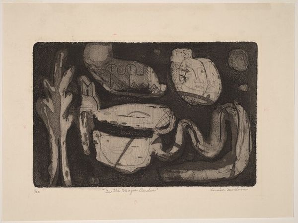 Wanda Gág made this lithograph, Backyard Corner, using a rather unusual material: the Bavarian limestone. The image is rich in tonality, due to Gág's expert handling of the grease crayon, with which she drew directly onto the stone’s surface. Note the velvety blacks, and the nuanced grays – all achieved through careful control of pressure and layering. The limestone’s porous surface readily absorbs the greasy medium, allowing for printing of fine details, such as the blades of grass, and the various textures of the wooden implements. Consider the labor involved in creating this image. Lithography is a demanding process, requiring technical skill and meticulous execution. This print is not just a picture of humble implements, but a testament to the artist’s own work ethic. It asks us to look closely, appreciating the subtle beauty of the everyday, and the quiet dignity of hard work.