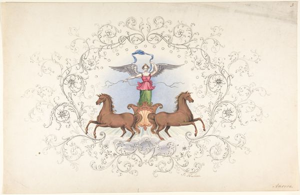 Editor: So, this is Plate 45: Embroidered Bedspread (St. James): From Portfolio "Spanish Colonial Designs of New Mexico," made between 1935 and 1942. It’s a mixed-media piece on paper, incorporating ink and drawing techniques. It feels almost intentionally… childlike, but in a captivating way. What jumps out at you when you see it? Curator: It's interesting, isn't it? I feel this almost primal urge to understand its narrative. The simplified shapes and vibrant colours give it the directness of a folk tale. It almost transports me back to a simpler time. But let's delve a little deeper, shall we? Editor: Please do! I'm curious about what’s beneath the surface. Curator: Well, this piece, despite its surface naivety, acts as a window into a unique time. The artist recreates the visuals from the Spanish Colonial period, echoing traditional designs but transforming them through a modern lens. It isn’t merely a copy, it is infused with… feeling, don’t you think? Do you get the sense that the artist had a personal connection with the colonial era in New Mexico? Editor: Yes, definitely! The details, the somewhat uneven lines... it feels like a story told from memory. Like someone recreating a cherished heirloom. Curator: Precisely! And look closely – the materials contribute to the feeling. It speaks of handmade quality, a deliberate break from mass production. Each stitch, each line seems like a whispered secret, wouldn't you agree? Editor: I do! It feels like I'm holding history in my hands, even looking at it here. This has opened up a completely new perspective on folk art for me. Curator: And for me too; to see something old with a fresh pair of eyes helps to relive memories I'd forgotten I even had.