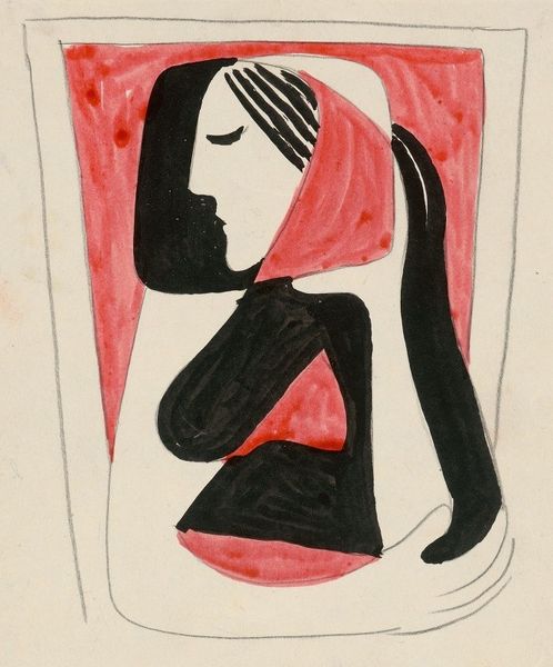 Curator: This painting, titled "Sen", is attributed to Carlos Orozco Romero, and it appears to be an acrylic work focusing on the interplay between figuration and abstraction. It’s quite striking. Editor: It does give off this potent feeling of both connection and alienation, doesn’t it? The palette feels very restricted, the forms simplified almost to geometric ideas, and that hug looks almost like a struggle... or is it just me? Curator: I see that tension, too. Look at how the planes intersect and carve out spatial ambiguity. Notice the background is an uncertain blue, maybe sky or perhaps a room pressing in; the figures, simplified to these elegant contours, enhance the composition through vertical orientation. The use of acrylic paint enhances the textured look. Editor: Textural but still, almost severe! Like a dance with ghosts. I keep thinking about how the shapes and colors seem pulled from street art, something rough edged against polished elegance, an odd combination. If you stumble across something like that unexpectedly, it changes everything! Curator: Yes, its relationship to mural or graffiti art aesthetic traditions, but rendered on canvas with this precision is an interesting blend that reflects many contemporary voices. What does it make us consider about public and private selves? It feels poignant now! Editor: You got it, public versus private-- or internal versus external?! So the hug symbolizes our search for intimacy. This is why it's so easy for anyone to simply walk into a museum. I find myself reaching for some deep stuff now—how artists reveal a mirror of our deepest selves by taking formal leaps with shape and shadow—pure alchemy, isn't it? Curator: Absolutely, that transformative potential in even restricted forms, and limited tones, reminds me to not set limits on how a narrative should read, since "Sen," allows many interpretations, ultimately creating new spaces. It truly transforms both observation and feeling to meaning and reflection. Editor: Right? "Sen", for me at least, is one that sticks with you well after you’ve turned away from the image--that means a lot in this attention economy.