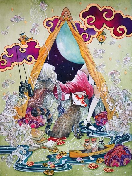Dave Macdowell’s surreal painting plunges us into a dreamscape riddled with symbols of desire and vulnerability. At its heart, the figure wears a dress constructed of breasts and a three-eyed bunny head, standing trapped in a massive bear trap – a stark emblem of constraint amidst a carnivalesque landscape. Note how the artist combines elements of childlike innocence, with the cartoonish figures and sweets, and adult themes with the overtly sexualized imagery. The bear trap, a symbol of entrapment, echoes through history. One sees this echoed, for example, in medieval allegories where virtuous figures are ensnared by vice. Here, it suggests the character is caught in a web of his own desires or societal expectations, hinting at the dangers of commodification and objectification. The image conveys intense emotional states, engaging the viewer on a subconscious level. The artist’s dreamscape is a cultural mirror, reflecting our collective anxieties and fantasies. The symbolism is not static but cyclical, resurfacing and evolving across time, inviting endless reinterpretation.