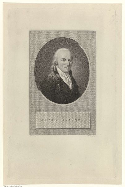 Curator: This is François Jacques Dequevauviller's portrait of Thomas Jefferson, currently held at the Harvard Art Museums. What are your initial thoughts? Editor: Austere. The formal composition and tight framing suggest a very controlled image, almost detached from a specific time. Curator: Indeed, portraits like this served specific social functions. Consider the context: The means of replicating and distributing images like these involved complex labor, influencing how Jefferson was consumed as an icon. Editor: True, but look at the balance of light and shadow; how the artist used line to define Jefferson's features, conveying intellect and gravitas. It is a study in contrasts. Curator: It shows how even a seemingly simple portrait encodes complex social relationships around power, production, and representation. Editor: A fascinating convergence of form and function, then.