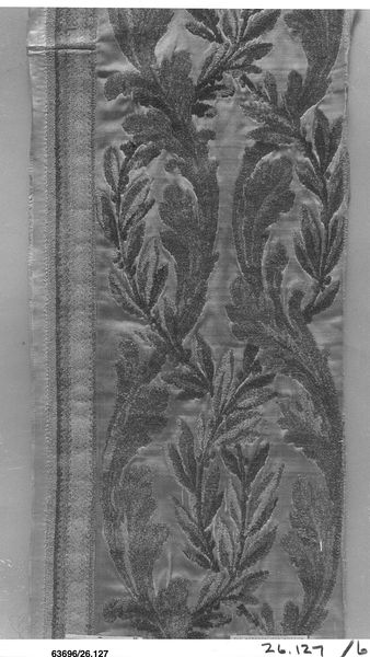 This tapestry lining for a bed tester, was made in France by Beauvais, one of the most famous tapestry manufactures of its time. The bedchamber was a highly public space for the aristocracy, and tapestries like these served as a backdrop for social rituals, projecting power and status. Floral motifs, like those seen here, became fashionable during the reign of Louis XIV. These designs were not just decorative but symbolic, with specific flowers associated with particular meanings and social identities. Beauvais, established under royal patronage, played a crucial role in shaping French taste and luxury. The institution employed skilled artisans and designers, producing works that reflected the opulence of the French court. We need to remember though, that royal patronage often led to a centralization of artistic control, thus reflecting and reinforcing the social hierarchy. To fully understand this tapestry, you could explore the archives of Beauvais, period accounts of court life, and studies of textile production. Art is always contingent on its social and institutional context.