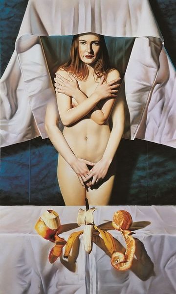 René Magritte painted Philosophy in the bedroom with oil on canvas. The smoothness of the surface is so seductive, isn't it? The traditional realism is just bizarre and funny. It’s a way of using painting to play with the ideas of representation. The color palette is muted, almost like an old photograph, which adds to the uncanny feeling. Look closely at the dress and the nipples, how they’re rendered with such delicate shading, a kind of hyper-realism that makes the image all the more surreal. And then there are the shoes with feet inside, placed on a table, not worn but displayed. I keep thinking about the gesture of the hand of the painter making this painting. Magritte reminds me of a modern day painter like Lisa Yuskavage, who also challenges our ideas of beauty and sexuality. Art is always a conversation, and Magritte’s work continues to spark dialogue and debate about what it means to see and to represent the world around us. It's less about answers, and more about the questions we ask.