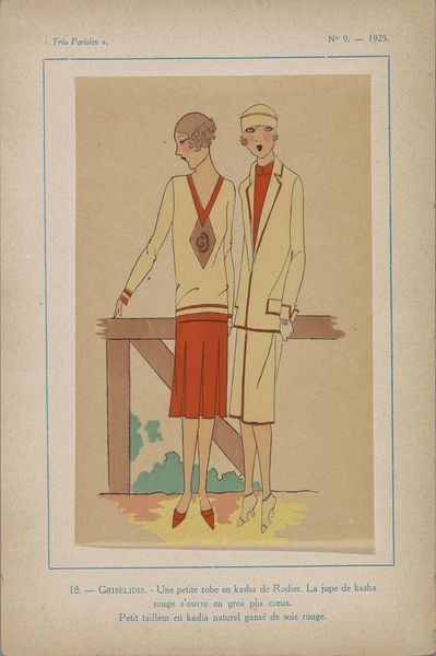 George Barbier made this pochoir print titled "Rugby; Costume tailleur de Redfern" in 1914. It presents a stylish vision of leisure that speaks volumes about the cultural moment in which it was made. Fashion plates like this one served as a crucial link between Parisian haute couture and a wider, aspirational audience. The Redfern tailoring house, advertised here, catered to a wealthy clientele, epitomizing elegance and social status. What's intriguing is how Barbier juxtaposes this refined image with figures in rugby attire. Sportswear was not yet fully divorced from its associations with amateurism and the upper classes, indicating that leisure and physical pursuits were becoming increasingly fashionable among certain social groups. To understand the image more fully, we might delve into the history of fashion magazines of the period, or research Redfern's place within the fashion industry. Examining the social history of sport and leisure at the time, we can contextualize its significance. Art doesn't exist in a vacuum; it reflects the values, aspirations, and power structures of its time.