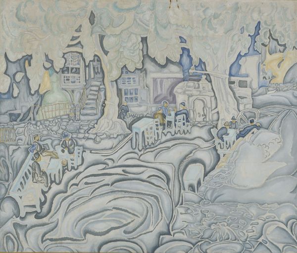 Mikalojus Konstantinas Ciurlionis made this painting, "The City," at an unknown date, using an unknown medium on canvas. It’s all about atmosphere, right? This painting feels like a memory or a dream, something not quite solid. Look at how Ciurlionis builds up the image with these wispy layers of grey, pale blue and white. The brushstrokes are so soft they almost dissolve into the canvas. It feels less about rendering a specific place and more about capturing a mood, a feeling of longing or maybe just quiet contemplation. I keep coming back to that central tower, how it seems to emerge from the mist, but also how it fades back into it. It’s like a metaphor for the way we perceive things, how they come into focus and then slip away again. Ciurlionis reminds me a little of Odilon Redon; both were interested in the symbolic possibilities of color and form, using them to evoke inner states rather than to describe the external world. "The City" isn’t just a place; it’s a state of mind, an invitation to get lost in the haze.