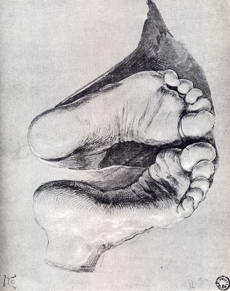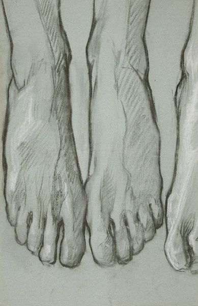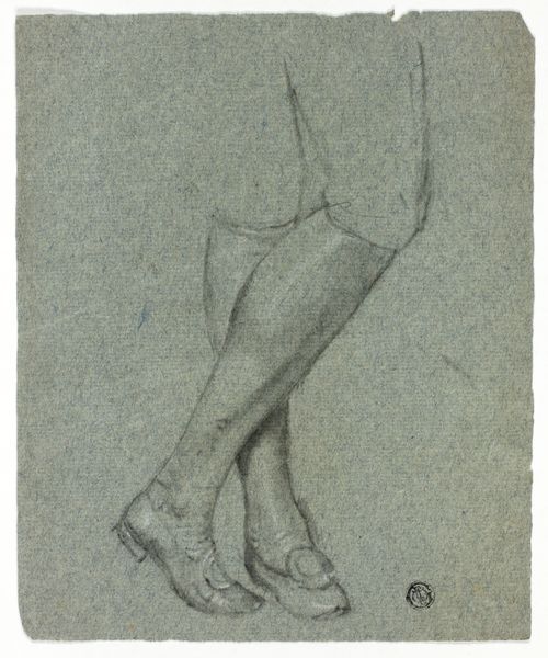 John Downman made this drawing of a leg and shoe with graphite on paper, but it’s far from a simple sketch. The medium itself is telling. Graphite, a relatively soft and versatile material, allows for subtle gradations in tone. This suggests Downman was interested in capturing the fall of light and shadow, giving the leg a sculptural, almost tangible presence. The choice of paper, with its slightly rough texture, also plays a role. It catches the graphite, creating a soft, velvety effect. You can almost feel the fabric of the stocking, the leather of the shoe. These were luxurious materials, reflecting the wealth and status of the sitter. But there’s also a sense of labor involved. Downman’s meticulous attention to detail, the delicate hatching and cross-hatching, speaks to the hours of careful observation and skilled handwork that went into creating this image. It’s a reminder that even a seemingly simple sketch can be a testament to the artist’s craft and the social world it inhabits.
