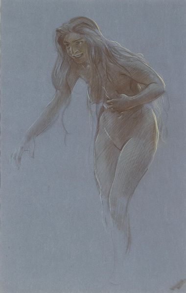 Editor: Here we have Pierre-Paul Prud'hon’s “Study of a Male Nude,” circa 1810, executed in pencil and pastel chalk. The muted palette creates an ethereal feeling. What strikes you about this work? Curator: I’m immediately drawn to the material process. Notice how the hatching marks don't just define form, but speak to the very act of repetitive mark-making. Consider the socio-economic conditions that enabled the mass production of pencils and chalk at this time. Who had access to these materials, and what did their availability mean for artistic training and production? Editor: So, you’re less interested in the idealized form itself, and more in the nuts and bolts? Curator: Precisely. The idealized nude is a product of academic tradition, yes, but it’s the democratization of the means of production, cheap drawing materials for the masses to practice, to attempt such classic ideals that makes it interesting. Are we even considering the type of paper here? What mill produced it and its social, geographical and economic origins? These processes allow for that traditional form to even be conceptualized. Editor: I hadn’t thought about it that way. How does the “academic” style relate to this? Curator: The Neoclassical style often emphasizes order and reason, drawing inspiration from classical antiquity. I would ask instead, "what allowed this reference to antiquity to be revitalized during the specific time? Who supplied what, when and why in the timeline of materials used, and socio economic setting that Prud'hon stood?" Editor: I’m beginning to understand how looking at the material conditions of its creation can change our entire understanding. Thanks! Curator: My pleasure! Examining the raw materials reshapes art-historical narrative!