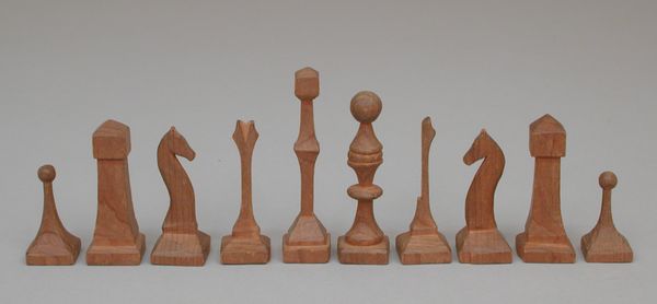 Dimensions: Height (tallest red, confirmed): 4 1/16 in. (10.3 cm); Height (red pawn, confirmed): 2 in. (5.2 cm); Height (tallest white, confirmed): 4 in. (10.2 cm); Height (white pawn, confirmed): 2 1/16 in. (5.2 cm); Overall (original box, confirmed): 5 3/4 × 21 7/8 × 15 5/8 in. (14.6 × 55.6 × 39.7 cm) Overall (board): 3/4 × 21 3/8 × 14 3/4 in. (1.9 × 54.3 × 37.5 cm)