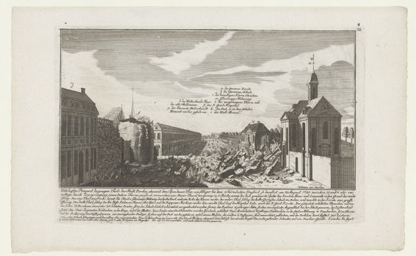 Curator: This print, dating perhaps from 1677, showcases 'Toepassing van de nieuwe brandspuitslangen', which translates to ‘Application of the New Fire Hoses.’ It's held at the Rijksmuseum and created through etching and engraving techniques in a detailed, linear style. Editor: Well, immediately, the stark contrasts in this print evoke a strange mix of cool observation and impending doom, don’t they? It's almost clinical in its depiction of a rather terrifying scenario. Curator: Indeed. Attributed to an anonymous artist, it's an intriguing piece offering a cityscape undergoing a crisis—the early application of firefighting technology during a blaze. There's something inherently hopeful in witnessing this. Editor: It also suggests a moment of innovation and the visualization of progress, an almost mythic element in picturing the salvation of an old Dutch city. Tell me, is it the literal "application" or the idea that captivates? Curator: I lean towards the act itself. Look at the layout, so precise in depicting each stage from water source to nozzle, yet also alive with frantic human activity. The symbolism in those small details can speak volumes! Editor: Symbols like? Curator: Consider the hoses—they snake across the landscape, almost serpentine, implying the potential threat alongside technological mastery. Fire itself is purification but it represents destruction, rebirth… it’s elemental. And all those numbered vignettes at the bottom? I wonder if those serve to dissect the spectacle. Editor: Oh, certainly! Each numbered section anchors the primary narrative, providing smaller "stories" within a "story." So really it breaks down this great chaos to the key components, providing context. Is that not an effort to comprehend disaster? To contain fear itself? Curator: Possibly! We might assume the original audience appreciated clarity and an ordered narrative amidst fear and devastation, though, being so didactic makes one wonder how truly devastating fires in those days were, requiring a sort of pictorial explanation like this one. Editor: Perhaps that controlled, narrative perspective granted them psychological power over the ever-present threat of uncontrollable fire. This feels like a precursor to disaster reportage. Curator: Yes! So looking closer, beyond being an image documenting a new technique, it becomes almost a case study of public consciousness and societal coping mechanisms. It really shows a new sense of urban community taking shape! Editor: A story etched in lines, indeed. What a reminder that even disasters hold hidden messages, don’t they?