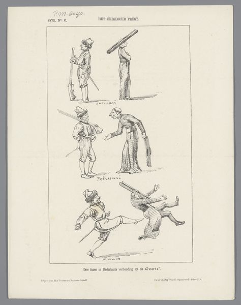 This print, made in 1861 by Johan Michaël Schmidt Crans, presents us with a window into Dutch society. The lithographic process used to create this image allowed for the relatively quick and inexpensive reproduction of images, making political satire like this accessible to a wide audience. The stark lines and contrasts inherent to lithography emphasize the cartoonish exaggeration of the figures, underscoring the artist's critique of the military law. This law, intended to bolster the country's defenses, is here depicted as arbitrary and absurd, with men being measured and judged for their suitability for service. The very act of printing, a mechanical process, speaks to the dehumanizing aspects of bureaucracy and state power. The artist uses this medium to question the relationship between the individual and the state, and the impact of political decisions on everyday lives. The print reminds us that even seemingly simple images can carry complex social and political meanings. By considering its material qualities, we gain a deeper understanding of its historical context.