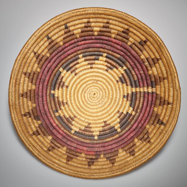 This woven mat was made by an artist from the Tutsi people. It’s a tight spiral of natural fibres, light and dark, each circuit precisely placed. You can sense the careful, repetitive motions in the making of this object. Look closely, and you’ll see subtle shifts in the texture and color, adding a layer of depth to the piece. The darker fibers create a dynamic pattern, like stylized lightning bolts frozen in mid-strike. The way these marks play against the neutral background gives the mat an energetic feel, a sense of movement. Notice how the individual strands catch the light, creating a subtle shimmer across the surface. This kind of object is so tactile, it makes you want to reach out and feel the texture. There’s something about the precision and care in this mat that reminds me of the work of Anni Albers. Both artists share an interest in the intersection of craft and design, and a dedication to the beauty of simple forms. Ultimately, what makes this mat so compelling is the way it embodies both function and artistry, demonstrating the endless possibilities of humble materials.