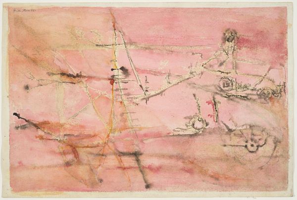 Paul Klee made 'Episode Before an Arab Town' using watercolor and ink, and you can really feel that process. The colors are translucent, like light filtering through something, and the ink lines scratch and tickle the surface. Look at the way Klee layers the washes of color; it's not about creating a perfect picture, but more like building up a feeling, a memory. That dark patch at the top, like a storm cloud, or maybe just the cool of the evening, presses down on the lighter, pinkish land. The figures are just suggestions, scribbles that somehow convey movement and life. It reminds me a bit of Cy Twombly, the way he used line and color to evoke a sense of place and history, without being literal. Art's not about answers; it's about the questions we ask.