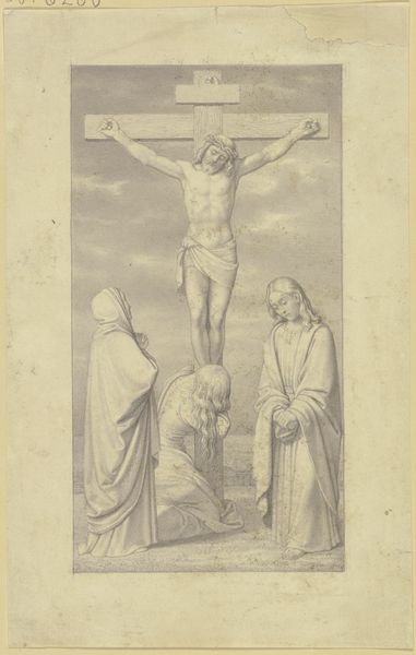 Jacob de Wit rendered this image of Christ on the cross in chalk and gray ink. Here, the cross is not merely an instrument of execution, but a symbol of profound religious significance, embodying sacrifice and redemption. At the foot of the cross, a skull and bones rest, a stark memento mori, reminding us of our mortality. This symbol echoes throughout art history, appearing in vanitas paintings, where skulls signify the transience of life, and in depictions of saints, marking their triumph over death. The cross itself, we see it evolve from ancient solar symbols to a Christian emblem. The emotional weight carried by the image of the crucifixion engages viewers on a subconscious level, evoking feelings of sorrow, empathy, and awe. The symbol of the cross resurfaces and evolves through history, taking on new meanings in various contexts. It reminds us of the cyclical nature of symbols, and their capacity to evoke profound psychological responses.