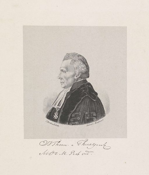 Editor: Here we have "Thomas Thaarup," an 1870 print, an etching and engraving actually, by C.C. Andersen. The detail is remarkable. It feels very formal, but also quite…stark. What do you see in this piece? Curator: I'm drawn to how Andersen employs a very specific visual language here. The oval frame immediately positions Thaarup as an exemplar, almost like a cameo or a Roman bust. Look closely – what does that medallion suggest to you? Editor: Possibly membership in some society or an award for service? Something to do with status. Curator: Precisely. Medallions and portraiture like this were crucial visual cues, signaling a man of importance within the Danish social structure. But what kind of importance, do you think? What impression are they trying to make? Editor: Given the almost severe realism, without idealization, maybe they wanted to portray him as a man of substance, not just appearance. A serious intellectual? Curator: Yes, there's an undeniable desire for posterity. That etched inscription is not just identification, it is about fixing his place in time, connecting to a tradition of learned men memorialized through image. It also links him to cultural memory. And perhaps something else strikes you about his gaze? Editor: He looks straight out, but not confrontationally. He wants to be seen, known, understood. There's a definite invitation. Curator: That’s perceptive. This isn’t just a picture of a man. It is about constructing an idea of a man to resonate over generations. Editor: It’s fascinating how much information is encoded into what seems like a straightforward portrait. Curator: Indeed. Images always speak volumes, far beyond what is immediately apparent, echoing throughout time.