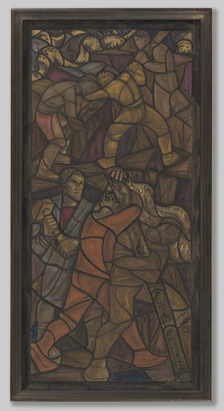 Richard Nicolaüs Roland Holst made this design for a window in Amsterdam’s Town Hall using crayon and charcoal. There’s a real sense of process here, you can see Holst working through the composition, building it up piece by piece, with a clear sense of the materiality of the medium itself. It’s like he's thinking out loud, using the surface as a space for exploration. The colours are muted, earthy tones, and the lines are thick and deliberate. This adds to the sense of weightiness and solidity, which is interesting considering it was designed for a stained glass window. It’s as if the artist is deliberately contrasting the lightness and transparency of glass with the heaviness and opacity of crayon and charcoal. Look at the net in the foreground, you can almost feel the weight of it, pulling the fishermen down into the waves. It reminds me a little of Paula Modersohn-Becker's work, with its emphasis on form and its earthy palette. Ultimately this piece is a testament to the idea that art is an ongoing conversation, and that there’s always more to discover if you keep looking.