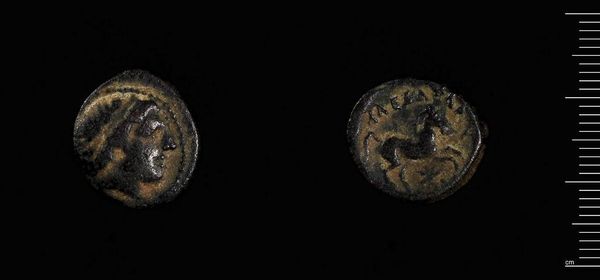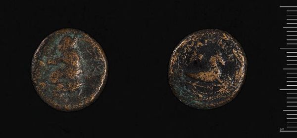 Curator: This is a coin from the Koinon of Thessaly, currently held at the Harvard Art Museums. It's a striking example of ancient currency, isn't it? Editor: It does feel weighty, not just literally at 5.54 grams, but also symbolically. There's a somber tone to its aged patina. It evokes a deep past, a sense of history eroded but not lost. Curator: Absolutely. The imagery is key. Thessaly was famed for its horses, and this coin depicts one prominently. The horse, as a symbol, carries so much: power, nobility, even a connection to the divine. Editor: And yet, looking at it now, I can't help but think about who had access to this "power" and "nobility." Who did this currency serve, and who was excluded? It speaks to the hierarchies embedded even in something as seemingly simple as a coin. Curator: That's a compelling point. The Koinon was a league of Thessalian city-states, so the coin represents a collective identity. The horse becomes a shared emblem, a visual shorthand for Thessalian pride and unity. Editor: But unity for whom? These symbols are never neutral. They represent the values and power structures of a specific group, often at the expense of others. That horse might have been bought and sold, perpetuating certain social conditions. Curator: You’re right to question the dominant narrative. Examining these objects through a critical lens reveals so much about the complexities of the past. Editor: Indeed. It reminds us that history isn't just about grand narratives but also about the everyday power dynamics embedded in objects like this.