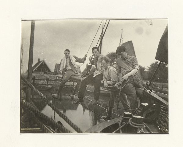 This photograph, "Emigratie", of unknown date, by the Keystone Press Agency, captures three young emigrants surrounded by luggage. In this image, the stark greyscale palette feels almost like a memory, a document of a time filled with uncertainty and big change. The composition is heavy with the weight of their possessions, each suitcase and bag telling a silent story of lives packed up and carried away. The texture in the photograph is fascinating, from the worn leather of the suitcases piled high to the soft focus on their faces, there is an interesting contrast, drawing your eye to the human element, the young faces that seem to be a combination of apprehension and hope. It’s like they’re trying to hold onto their memories and their dreams. You could compare this to the work of someone like John Heartfield, in that both artists create work which reflects on moments of radical change and the impact on individual lives. Photography like this isn't about fixed answers, it’s about the questions it raises and the shared human experience.