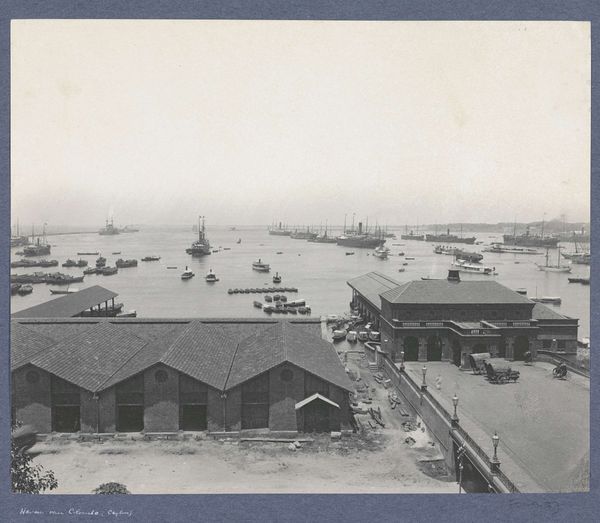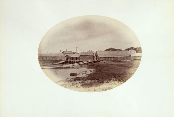 Editor: This print, dating from somewhere between 1870 and 1890, depicts "Buildings and Catholic Church in Port Tawfik at the Entrance to the Suez Canal" by C. & G. Zangaki. It's… well, it's undeniably sepia-toned! I’m also struck by the rigid orderliness of the buildings. What story do you think this image is trying to tell, or perhaps hinting at? Curator: A story? Well, to me, it whispers of ambition, doesn’t it? The Suez Canal, a literal shortcut to dreams – and that Catholic Church standing proudly alongside, feels like an anchor, faith in a place defined by movement and trade. Notice how the light seems to emphasize both the industrial and the spiritual sides of the town. A balance or tension – what do you sense? Editor: I guess I feel a kind of imposed order, almost colonial… The rows of buildings, everything very regimented. Is that fair to say? Curator: Absolutely, fair, love. 'Orientalism' as an artistic style reflects precisely this – the West's perspective *on* the East, sometimes romanticized, sometimes controlled. Look how the viewpoint is elevated, almost like an observation point. Are we truly *part* of the scene, or are we always outside looking in? That is what orientalism brings, right? A bit of outsider's observation of the inside world of others. Editor: Hmmm, that makes me think about how photography itself played a role in shaping those perceptions. It's not just a neutral record, is it? Curator: Precisely! It chooses what to show, how to frame it. Just like us! Thank you for pointing out photography here, as an eye, capturing life from a particular lens, from a specific narrative. Editor: Well, I’ll definitely be looking at similar images with fresh eyes now. So many layers to unpack. Curator: Exactly, like gazing into a dusty, layered mirror. I am equally thrilled to revisit the topic after such an intriguing and engaging exchange.