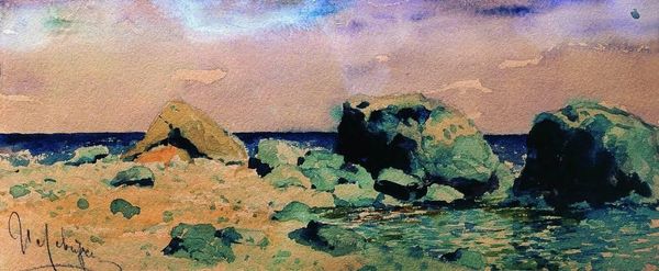 This painting by Claude Monet, rendered with oil on canvas, presents a scene at Val Saint-Nicolas near Dieppe. The dominant visual experience is one of atmospheric perspective, with soft, blended colors creating an ethereal quality. The rock formations are composed of ochre and lavender hues that evoke a sense of geological structure and the erosive power of nature. Monet's choice of color destabilizes conventional representation, offering a new way of seeing the landscape. The brushstrokes are loose and expressive, contributing to the overall impression of movement and change. The composition leads the eye from the solid forms of the cliffs to the hazy horizon, creating a dynamic interplay between stability and transience. In this work, Monet engages with the philosophical concerns of perception and representation. His technique reflects a move away from objective depiction towards a subjective interpretation of light and atmosphere, inviting us to reconsider fixed notions of space and form.