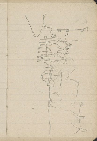 This pencil drawing, "Gezicht op de Prins Hendrikkade te Amsterdam," was created by George Hendrik Breitner. The sketch presents an evocative yet incomplete vista of Amsterdam’s waterfront. The architectural forms along the Prins Hendrikkade are outlined with sparse, angular strokes, contrasting with the fluidity of the masts and rigging in the foreground. The artist used the linear structure of the sketchbook page to construct his composition. The lines become an integral part of the drawing itself. Breitner's sketch embodies a sense of immediacy, where the visual language conveys a feeling, capturing the fleeting essence of a moment. This approach challenges traditional artistic conventions, prompting a re-evaluation of what constitutes a complete work of art. The drawing invites us to consider the relationship between the sketched line, the represented form, and the viewer's perception.
