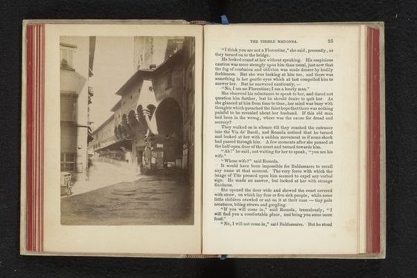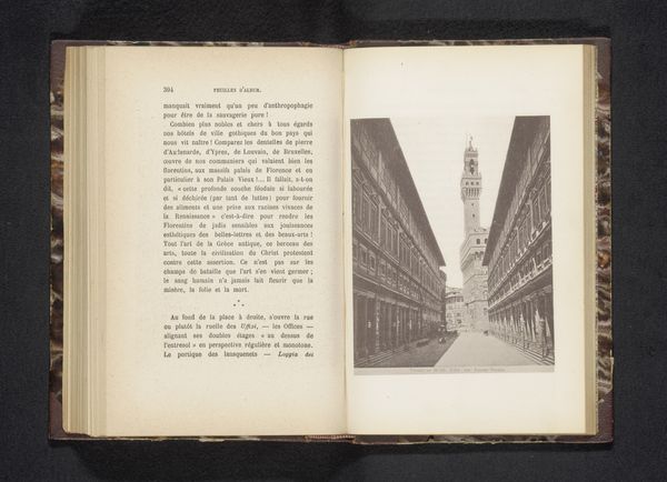 Curator: This photographic print, "Bargello te Florence" by Giacomo Brogi, dated before 1863, presents a cityscape bathed in early photographic light. Editor: There’s something so stark and beautiful in the monochrome palette; a quiet but solid dignity arises from the image, given the age of the work. It calls to mind architectural documentation, with attention devoted to surface quality and overall structure. Curator: Absolutely. The print—likely an albumen print, perhaps even a gelatin-silver print given the nuances in texture—captures not only the architecture but also a sense of Florence frozen in time, imbued with the symbols of its power and permanence. You sense the intent to portray not just buildings, but an enduring civic identity. Editor: And the social process in producing such a photo. A fairly mobile studio has to be arranged. The glass plate meticulously prepared. How were subjects—especially everyday laborers passing by—persuaded to not linger in the image for longer than the 20 seconds to 30 minutes of the exposure? A negotiation for a view as much as it is a capturing of place. Curator: It's evocative, isn’t it? The composition emphasizes the Bargello as more than just a structure; its crenellations and sturdy facade convey a message about justice, order, civic pride. The choice of viewpoint invites viewers to contemplate Florence's historical consciousness. Editor: I think, too, the repetition of geometric patterns on its surface communicates not just control, but how standardization in architecture was used to create the appearance of equality. How we understand fairness might well change depending on where in relation to these buildings you reside, of course! Curator: Thinking about symbols here gives context, doesn't it? Brogi doesn't merely present us with a building; he delivers a cultural artifact loaded with political connotations relevant for his audience and those who study it to this day. Editor: Considering that it's a reproduction *in* a book adds to the experience as a material object, of course! A dissemination strategy involving reproduced, scaled-down views in dialogue with a different form, that of literary storytelling. How do we value this in the grander scale of the "art world?" Curator: Indeed, we discover the layered echoes of cultural memory through such visual mediums, allowing the observer to explore the symbolism with broader understanding. Editor: And a means by which photographic technology creates not just an artwork but access and knowledge for a readership far removed from Florence at the time of printing. Thank you!