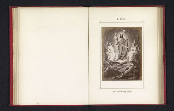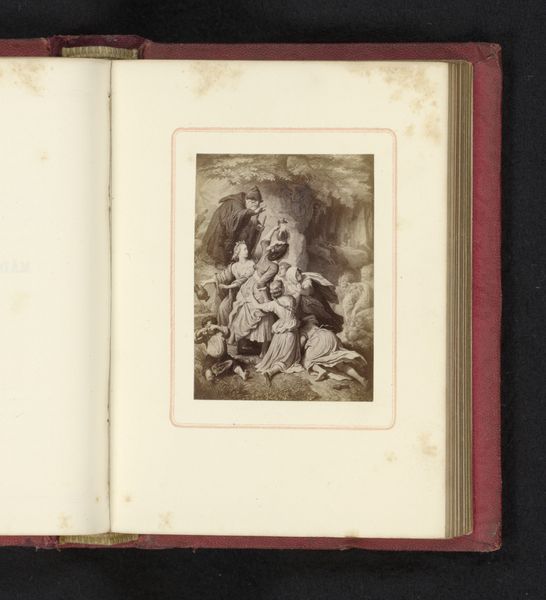 This photomechanical print reproduces a drawing of an angel serenading a group of children with a lute. The cultural references here are fascinating; angels frequently appear in art history as messengers of God, especially during the Renaissance. The presence of children is also significant, calling to mind the vulnerability and innocence that is so often associated with the theme of childhood, especially within a religious context. Now, consider the setting: why is this image encased within the pages of a book? This encourages us to reflect on the means through which art is consumed and understood, and the way that the presentation and circulation of an artwork shapes its meaning and reception. As historians, we might consider how the popularization of reproductive technologies influenced the way that audiences experienced and understood art. By researching the archives of institutions such as museums and libraries, we can further understand the journey of this artwork through time, and the shifting social contexts that have shaped its interpretation.