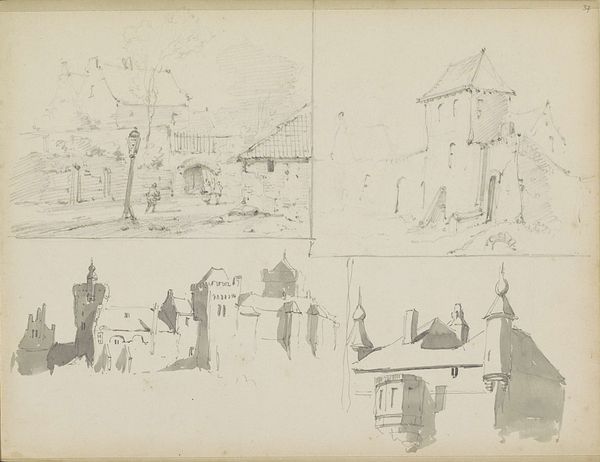 This delicate study sheet of buildings comes to us from the hand of Adrianus Eversen in the 19th century. Note the distinct architectural forms that evoke a sense of civic pride and historical continuity. These buildings, particularly the churches and towers, can be seen as variations of a singular motif that echoes through time. Think of the Tower of Babel, the pyramids of Egypt, or even the ziggurats of ancient Mesopotamia. Each serves as a testament to human ambition, spiritual yearning, and our collective desire to transcend earthly bounds. Consider how the pointed arches and vertical lines found in the churches symbolize an aspiration to reach the divine, a motif that reappears in Gothic cathedrals and Renaissance palaces alike. This visual language speaks to our subconscious, evoking feelings of awe, reverence, and a deep connection to the past. We see not just stone and mortar, but the echoes of human dreams and the enduring power of cultural memory.