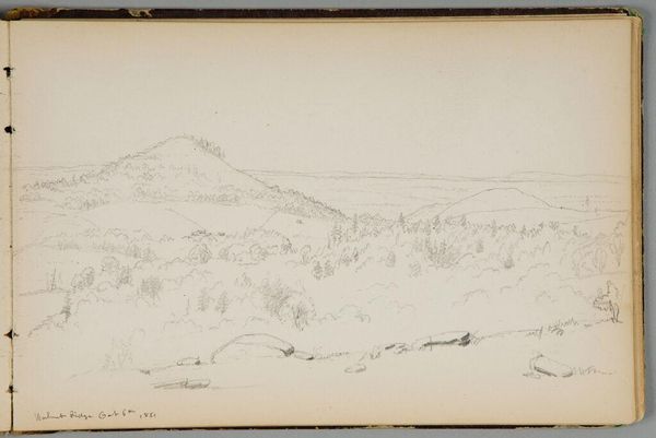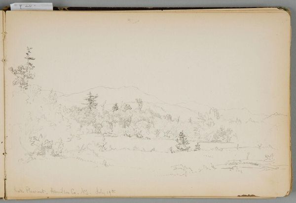 Curator: Here we have a page from a sketchbook by Sanford Robinson Gifford, dating from around the mid-19th century. This particular drawing is titled "Sacandaga Landscape," and on the other side is a sketch of the Hudson River. Editor: It's so delicate, isn't it? Almost ghostly. The landscape barely emerges from the page, like a half-formed memory. It feels incredibly intimate. Curator: Gifford was a prominent figure in the Hudson River School, and these sketches provide insight into his artistic process. Notice how he uses subtle pencil strokes to capture the essence of the landscape's topography. Editor: Absolutely, it's more about capturing the feeling of a place than a photorealistic depiction. I love how minimal it is; it invites you to fill in the details yourself. Curator: These sketches function like visual notes, recording fleeting impressions of the natural world. It shows the artist's keen eye for light and atmosphere. Editor: It makes me think about the ephemeral nature of beauty and how artists try to hold onto those transient moments. Curator: Indeed. Gifford captured the soul of the American landscape. Editor: And in such a simple way, which somehow makes it all the more powerful.
