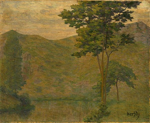 Editor: This is Theo van Rysselberghe's "The Pointe St. Pierre at St. Tropez" from 1896, an oil painting done en plein-air. I'm struck by how meticulously the colors are applied; the pointillist technique creates a shimmering effect. What do you notice first about its formal qualities? Curator: The systematic arrangement of juxtaposed color strikes me immediately. Observe how each small, individual brushstroke maintains its integrity, contributing to a vibrant yet unified surface. Consider the structure inherent within. The composition is essentially divided into three horizontal bands: the textured foreground, the calming sea, and the subtle sky. How do these divisions function? Editor: They seem to create a sense of depth, drawing my eye towards the horizon. The trees also act as a kind of screen, partially obscuring and revealing the landscape. Is that intentional, do you think, playing with opacity? Curator: Indeed. Note how the artist modulates light and color through variations in density and hue, a function vital to spatial depth, not mimicking, but recreating it. Also, examine how the individual units—those small strokes—build to create larger forms, giving us, essentially, two paintings to explore. One very close and granular, the other whole and calm. Does the repetition enhance the piece for you? Editor: It does! Now that you point it out, the micro and macro levels are quite fascinating. I initially just saw the surface, but now I understand the layered complexity the structure adds to the whole image. Curator: Precisely. Focusing on its intrinsic elements can greatly amplify one's understanding and appreciation. The structure of "The Pointe St. Pierre" is designed to reward an ever-deeper visual engagement. Editor: It's been a pleasure delving into this work and observing how these separate structures create a singular image. I’m definitely taking away a richer understanding of Van Rysselberghe's piece.