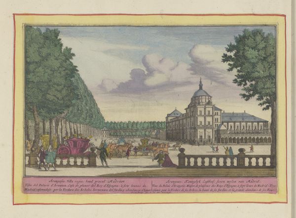 This engraving, Koninklijk Paleis van El Pardo bij Madrid, was created by Pieter van den Berge. Notice how the formal, architectural rendering of the palace creates a sense of symmetry, balance and order. The engraving emphasizes structure, with the imposing towers and meticulously rendered facade set against the backdrop of an open sky. The tree to the left provides an asymmetrical contrast, destabilizing the rigid formality of the palace with its organic form. The arrangement of space and the use of perspective functions to underscore power. The semiotic system of signs and symbols—the towers signifying authority, the open plaza implying public access—reflect the cultural codes of Van den Berge’s time. Yet, the rendering feels like a stage set: the almost theatrical composition suggests that the image of power is carefully constructed. The overall effect is a reflection on the dynamics between architecture, representation, and authority.