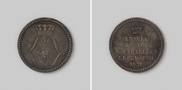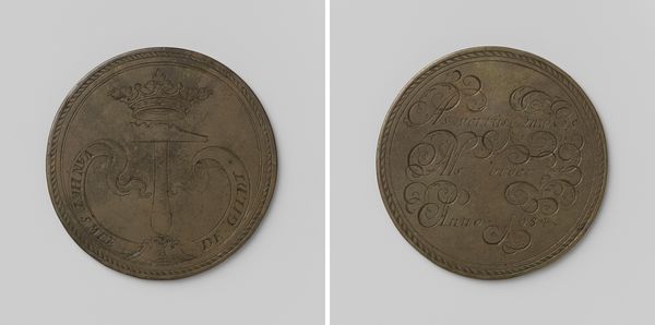 Editor: Here we have a metal engraving titled "Visit of the First Japanese Embassy to the Royal Dutch Mint in Utrecht 1862," dating back to 1862. The coin-like artwork has a certain old-world, almost anthropological feel to it, capturing a historical encounter. What historical or cultural narratives do you think this work is trying to express? Curator: This piece speaks volumes about the relationship between the Netherlands and Japan in the mid-19th century. Think about the context: Japan had only recently opened up to the West after centuries of isolation. The visit of this embassy was a pivotal moment. This engraving served as a form of public diplomacy, announcing the Netherlands’ progressive policies. Editor: Public diplomacy... I'd never considered that a commemorative coin could be that. Is there any specific imagery here that points to that idea? Curator: Certainly. The Dutch coat of arms is right next to a wreath of what seem to be Japanese chrysanthemum flowers, but stylized to align to western aesthetics. And let's not overlook the engraving technique itself. By choosing this medium, the Dutch could distribute and reproduce these images widely. Consider how important the distribution of such tokens might be in establishing an image of the Netherlands in the East. The fact that they were producing them also indicates the value and political cache they gave to these intercultural exchanges. Editor: So, it's less about documenting an event and more about constructing a specific narrative around it? Curator: Precisely. The visit itself becomes a tool for nation-building. What I find interesting is that this seemingly innocuous commemorative coin serves as a visual testament to complex power dynamics and political ambitions. How does considering this transform your interpretation? Editor: It makes me realize how easily art, even something as simple as a coin, can be used to shape public opinion and even distort history. Curator: Absolutely, a useful tool for us all to bear in mind when visiting our national treasures. Thank you, Editor.
