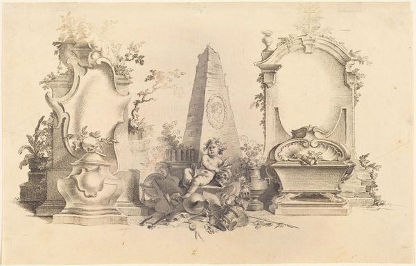 Aert Schouman made this watercolor titled, "Monument," sometime in the 18th century. Schouman lived during the Dutch Golden Age, a period marked by tremendous economic and social change; he was a glass painter, among other things, and his life was one of constant movement. The monument itself appears to be a tribute to classical antiquity, yet it’s filled with natural, earthly elements, such as wheat, fruit, and flora. Highlighting these elements, Schouman acknowledges the dependence of Dutch society on agriculture and trade. The mirror is also a key element, as it reflects a landscape with a bird perched in the center, almost urging the viewer to contemplate their own place in the world. The monument appears incomplete. In leaving the central plaque blank, Schouman encourages the viewer to consider what, or whom, they deem worthy of remembrance. What histories do we choose to honor, and how do these choices reflect our values and aspirations?