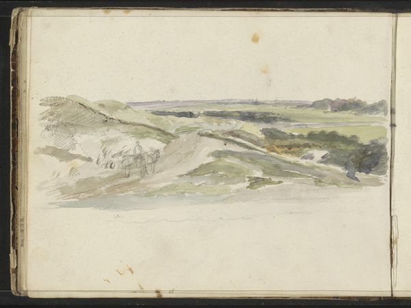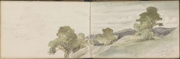 This is a sketchbook by Gustave Caillebotte, created in France sometime between 1860 and 1890. Caillebotte was born into the French upper class during a time of rapid industrialization and urbanization. As a white, heterosexual, cisgender man of means, Caillebotte was able to move through society with a certain freedom. His privilege afforded him the time and resources to create art which, in turn, influenced how society saw itself at that time. The left side of the sketchbook is blank, while the right side contains a watercolor landscape painting. The open sketchbook invites us into Caillebotte's creative process. It makes us witness to both the potential of the blank page and the fulfillment of a tranquil country scene. Although Caillebotte was a member of the impressionist circle, he had a penchant for realism. In this piece, the blend between realism and the unfinished, undefined quality of impressionism, invites viewers to contemplate our relationship with the natural world. It encourages us to value both the clarity and the mystery of the landscapes we inhabit.