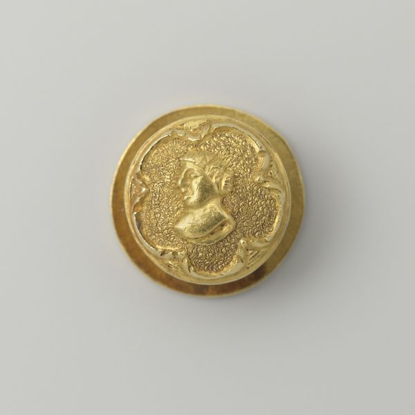 Curator: Oh, look at this intriguing artifact. It's a "Livreiknoop van zilver met wapen Teding van Berkhout," or a silver livery button featuring the Teding van Berkhout coat of arms, dating from around 1853 to 1866. Crafted from silver, of course, maybe with a little metal alloy thrown in. Editor: What strikes me immediately is its unassuming presence. It’s small, yes, but imbued with a powerful symbolism of identity and status, like a microcosm of a bygone era, hinting at hierarchical structures of power and influence in the Netherlands at that time. Curator: Absolutely! A tiny titan of identity. Imagine it gleaming on the livery of a coachman or footman, subtly yet proudly declaring the family's allegiance and lineage. These buttons weren't just fasteners; they were visual cues in the theatre of daily life. I can see it on a velvet waistcoat now. Editor: Exactly. Livery buttons like this one played a key role in visualizing social structures of labor and aristocratic hierarchy in nineteenth-century Dutch society. The display of the family crest and associated honors wasn’t merely ornamental, but signaled clear social and economic boundaries. Curator: The craftmanship is beautiful, though. The precision! The silver is tarnished with age, but look closely, and you can see the intricate details of the family crest, the tiny crown perched atop the shield. I bet it took serious talent to forge a piece like this! Editor: But even that perceived beauty must be understood critically; whose labor created this 'beautiful' object and for whom did they create it? Luxury goods depend upon access to materials, exploitable labor forces and, of course, wealth accumulation in the hands of a very few. The very small scale concentrates its impact in an odd way, I feel. Curator: Yes, I get that— the scale implies something else; almost as though these items become fetishized, and in so doing, distort historical perceptions about social structures and identity. They seem so innocent...until one interrogates that silence. Editor: Precisely, they act like a palimpsest, in this way. It offers layers of meaning that we're left to excavate. That simple design becomes deeply complex when we question the hands that made it, the bodies that wore it, and what their relationship really was to one another. Curator: This really shifts my perception... a lot.