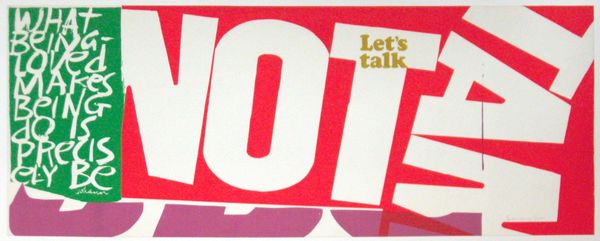 Curator: First impressions? The green is sort of aggressive, almost radioactive! What do you make of it? Editor: That vibrant green definitely grabs your attention. It's provocative, maybe a little unsettling—which I think is precisely what Barbara Kruger intended with her 2007 piece, "Face It (Green)". Curator: Yes! Kruger's work often feels like a slap in the face, doesn't it? I love how she uses this high-contrast, almost jarring aesthetic. Like a billboard, demanding attention, but then undercutting itself with the message. Editor: Exactly! Kruger's a master of appropriation, using familiar advertising techniques to critique consumer culture. Look at the layering of the bold text blocks "Face It" over the image of what appears to be an expensive garment and that little label stating "This luxurious garment won't make you rich or beautiful". It exposes the empty promises of capitalism, how it preys on our insecurities. Curator: It's like a Trojan horse, right? The attractive design sucks you in, but then BAM! She hits you with the truth. I'm thinking a lot about identity and performativity. How we perform our identities through these carefully constructed consumer choices. Like, I can wear a beret to scream artist but, is it *me*? Or is it a construct? Editor: Right! And she's cleverly addressing how capitalism specifically markets to anxieties around self-worth, especially in relation to beauty standards. Kruger highlights the ways in which capitalism perpetuates these false narratives for profit. That toxic message of lack... the green almost becomes nauseating. Curator: I get it. This piece speaks to the commodification of everything, including ourselves. What do you take away from it all? Editor: Kruger asks us to confront our complicity in systems that devalue us. A kind of fierce intervention challenging power dynamics in media, gender, class, and consumerism. "Face It" forces you to see, but then what? Are we awake yet? Curator: So true. I think it reminds me that as easy as it is to be seduced, being self-aware and seeing the truth actually can set us free. Kruger's so good at shaking us out of complacency and letting the sharp edges speak.