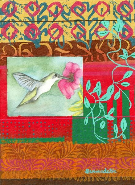 Bernadette Resha made Morning Nectar with what looks like watercolor or maybe gouache, and it feels like such a direct invitation into a moment. I love how the yellows and purples vibrate off each other, giving a real energy to the scene. And check out that hummingbird, almost collaged onto the surface with its rough white border. It's like Resha's playing with different levels of reality here, and making the most of the paint’s ability to both describe and invent. There's a loose quality to the brushwork, but also a clear sense of observation. The way the light catches the edges of those purple petals. It reminds me a little of Elizabeth Murray, someone else who wasn't afraid to mix up representation and abstraction, but really, Resha has her own thing going on. It’s a joyful, slightly odd, and totally captivating little painting.