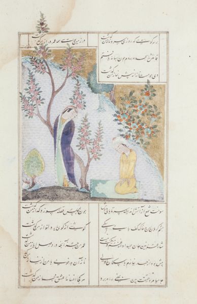 Curator: Here we have "Two Pigeons," attributed to Abu’l Hasan. The artwork, part of the Harvard Art Museums collection, presents a delicate study in ink, watercolor, and gold on paper. Editor: What strikes me is how ghostly they appear—like half-formed thoughts against a parchment sky. Curator: Exactly. These paintings were very fashionable in the Mughal empire. They served as intimate objects of prestige, displayed in books or albums, and were viewed only by the elite. Editor: I see them perched within a garden of light—perhaps the pigeons symbolize lovers in a courtly romance, tender and fleeting. Curator: Or perhaps they were simply a naturalist's study, intended to capture the beauty of avian life—a celebration of the natural world. Editor: Maybe both. A romance observed by a keen eye. I like that. Curator: It is a delicate dance of art and observation. Editor: So true.