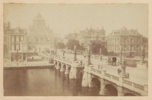 Andries Jager made this photograph of the Hogesluis and the Paleis voor Volksvlijt in Amsterdam. What kind of a ‘people’s palace’ is this? The Paleis voor Volksvlijt, or ‘Palace of Popular Industry,’ was built in the mid-19th century to promote industry and showcase technological progress. Constructed in the wake of the Industrial Revolution, it served as a site for exhibitions, trade fairs, and public events, a monument to bourgeois optimism. Jager’s photograph captures the grandeur of the building and its urban context. The Hogesluis bridge in the foreground is a modern construction, and the figures crossing it suggest the movement of people and goods that defined the city in this period. As a historian, I would be interested to research the relationship between the palace and the city, its role in shaping the urban landscape and the social life of Amsterdam. Further investigation into archival sources, architectural plans, and contemporary accounts would reveal more.