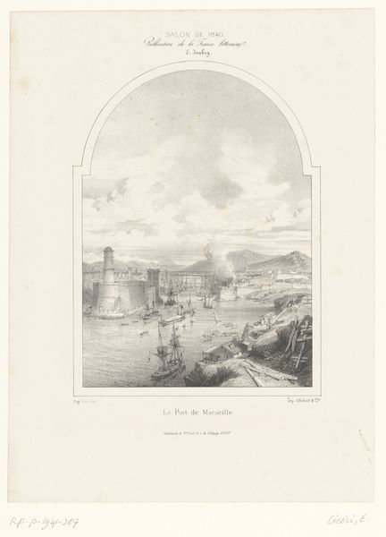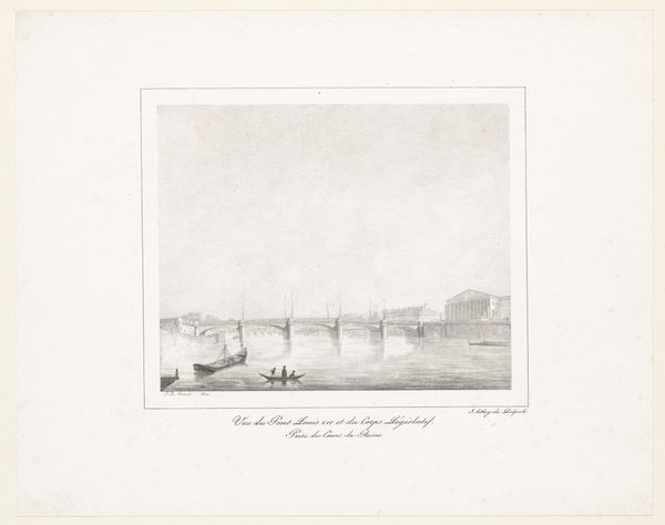Editor: So, this is a print from between 1800 and 1850 titled 'Gezicht op de Pont Neuf te Parijs' by W. Harding. It's a cityscape, quite somber and romantic, with that heavy sky looming over the bridge. What do you see in this image, in terms of what it's trying to say or represent? Curator: The Pont Neuf, as a 'new bridge', ironically the oldest standing in Paris, acts as a fascinating symbol. Look how it anchors the cityscape, literally bridging past and present. But there's an undeniable tension between that looming sky and the figures lingering on the riverbank. What emotional resonance do those details evoke in you? Editor: I get a sense of…resignation, maybe? The light is fighting to break through the clouds, but it's still very grey. The people seem small and insignificant compared to the architecture. Curator: Precisely. Notice how the artist uses the river as a reflective surface, almost mirroring the turbulent sky. The reflection speaks to the concept of 'vanitas,' the transience of life reflected in something fleeting and unsteady. Considering the historical context—the tumultuous period following the French Revolution—could this somber scene reflect a collective anxiety or disillusionment? Editor: That makes sense! The Romantic period was often about that kind of emotional intensity and uncertainty, right? Curator: Exactly. The 'new bridge' became an anchor, not just for a city, but perhaps also a society searching for stability after revolution. Harding may have consciously chosen that viewpoint to showcase resilience after such devastation. Does recognizing those dual symbolic references shift how you feel about the scene? Editor: Definitely. Seeing it now, it's not just a gloomy landscape, but something more profound, loaded with history and meaning. It gives a face to memory. Curator: Indeed, a landscape charged with cultural memory. We've both seen more today than just lines and shades.