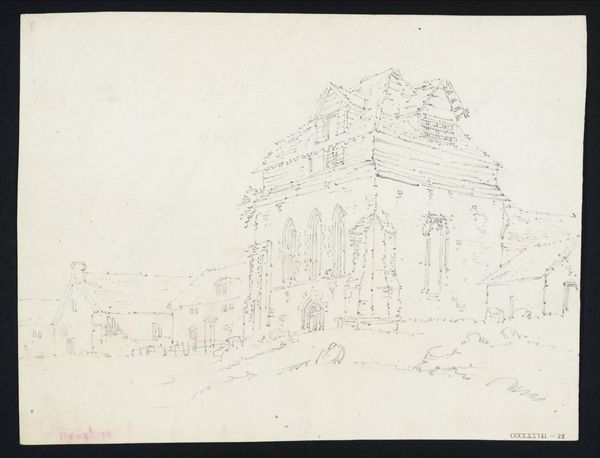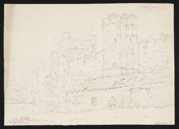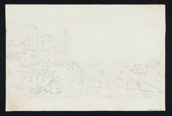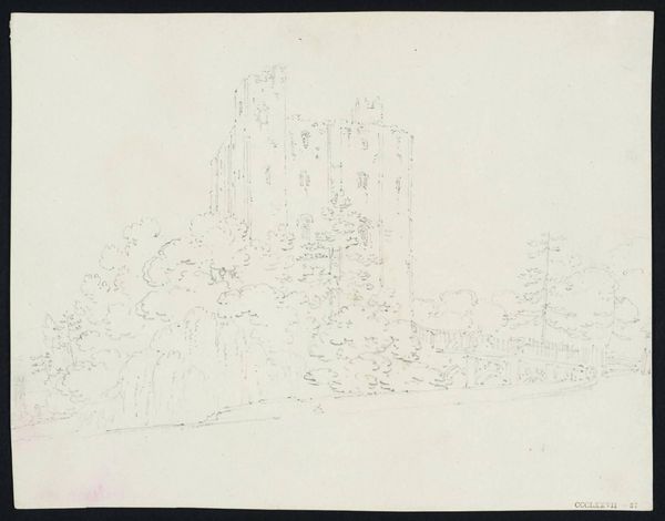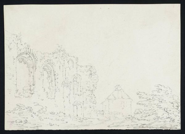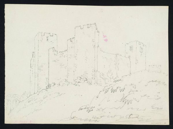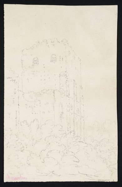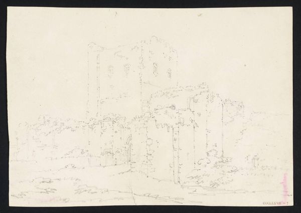 Editor: We're looking at Thomas Girtin's pencil sketch, "The Ruins of Middleham Castle, Yorkshire." It feels so fragile, almost like a memory fading away. What strikes you when you look at it? Curator: Fragility, yes, but also resilience. Girtin captures the castle's decay, but the very act of sketching it, immortalizing it, speaks to its enduring presence. What stories do you think these stones could tell if they could talk? Editor: Tales of battles, perhaps, or courtly intrigue? Curator: Exactly! This castle, once a symbol of power, is now just a whisper in the landscape. And Girtin, with his delicate lines, makes us listen closely to that whisper. Editor: I see it now—a conversation between past and present, drawn in pencil. Curator: Precisely! It's about seeing the beauty in what remains, the echoes that still resonate.